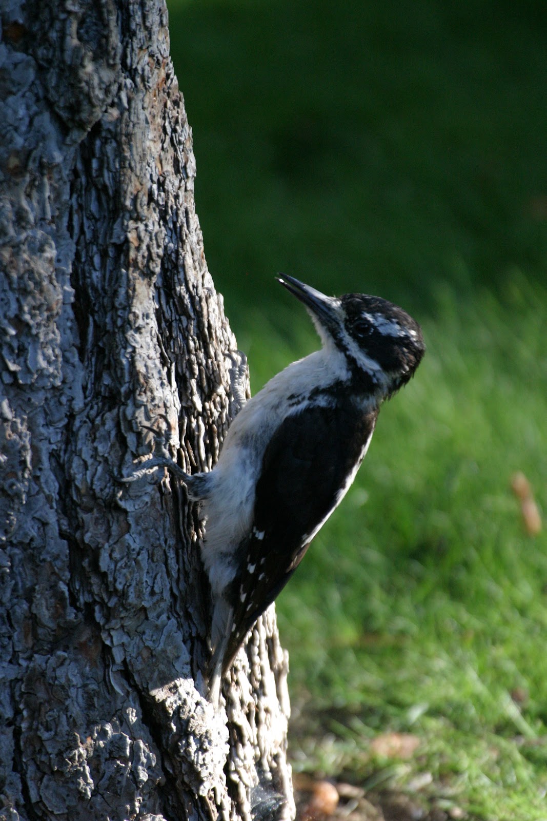 Stories like that abound from our birds. I didn't know acorn woodpeckers really hate squirrels until I saw them fighting over peanuts. The woodpecker won, by the way. Most birds love our sprinkler system that turns on every morning to water our grass. Hummingbirds hover in the spray. Flickers love our ants (great, have at 'em). Pine siskins eat us out of house and home, every spring. A lone Cordilleran flycatcher sings in our trees every morning in the summer, but I've never seen two of them, just one. We have had nuthatches (both pygmy and white-breasted), western bluebirds, mountain chickadees, juncos, ash-throated flycatchers, and even violoet-green swallows nesting in our yard, either in nestboxes or in our trees or shrubs. One night, a friend (Randy Babb, who took many of these photos) of ours took an MP3 player and called in three western screech-owls. We've seen those owls nearly every year; late at night they come to our pond.